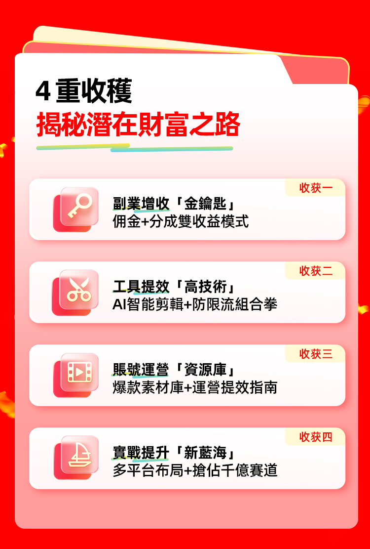 利用下班與零碎時間,AI 快速產出素材與流程;無粉絲、沒自信也能起步,先測試、再放大。